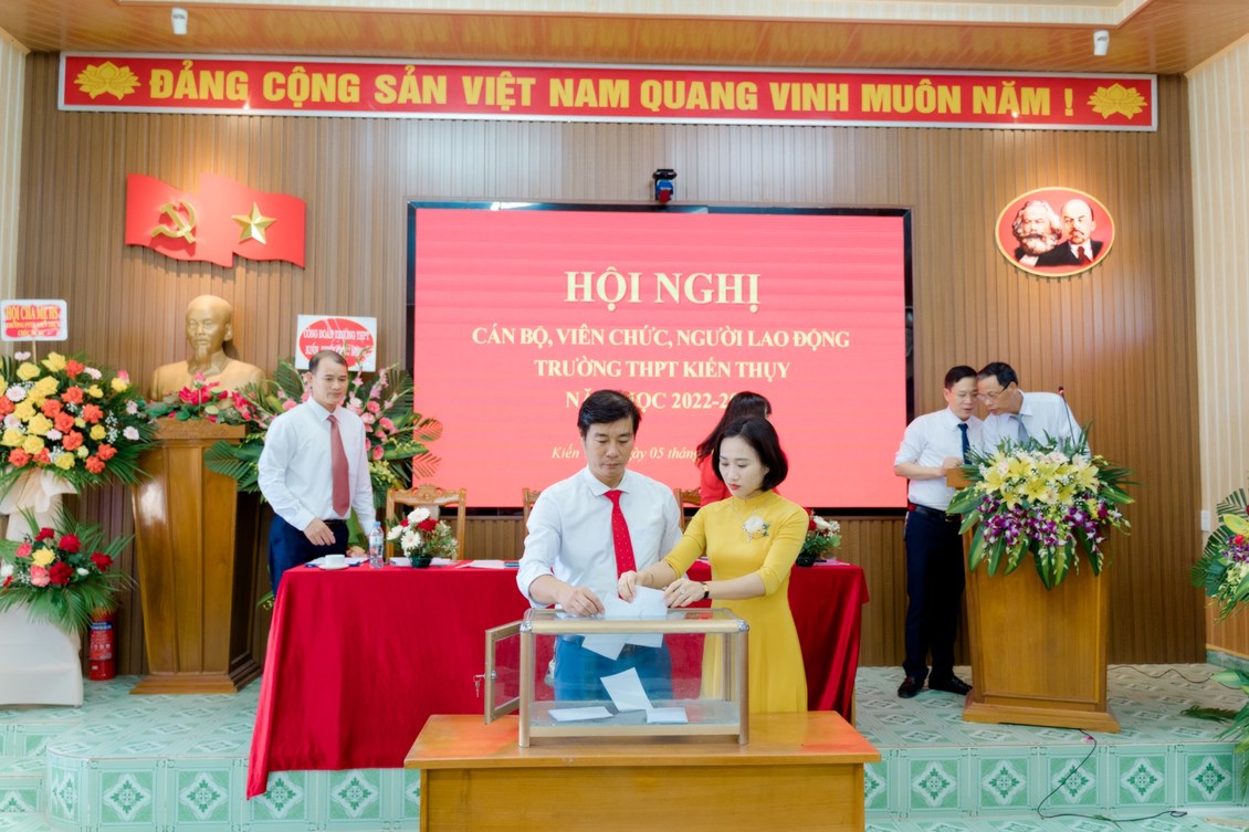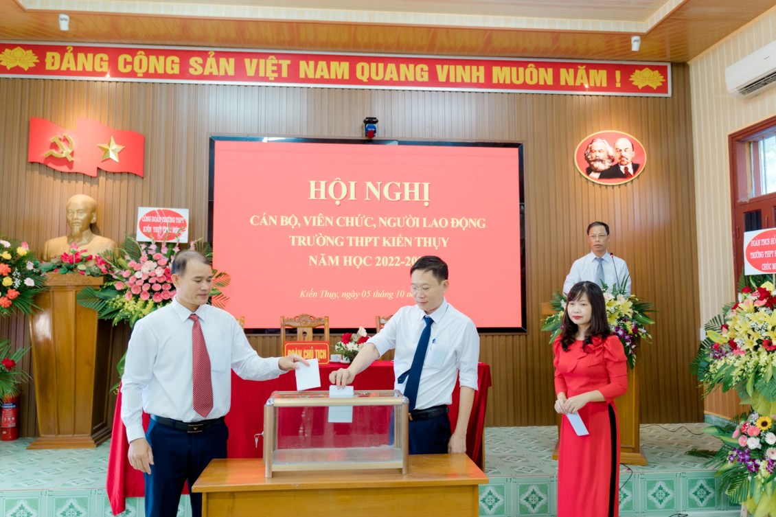 Sáng ngày 05/10/2022, tại trường THPT Kiến Thụy, Ban giám hiệu và Ban Chấp hành Công đoàn trường đã phối hợp tổ chức Hội nghị cán bộ, viên chức, người lao động năm học 2022- 2023.