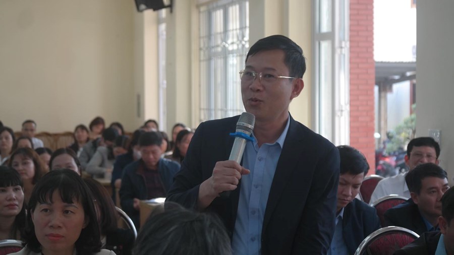 Hội nghị đã nghe đồng chí Phạm Tiến Thuật, Phó Chủ tịch UBND huyện Báo cáo tóm tắt kết quả thực hiện nhiệm vụ phát triển lĩnh vực giáo dục huyện (quy mô, chất lượng, cơ sở vật chất trong thời gian vừa qua...); kế hoạch phát triển trong thời gian tới. Với tinh thần thẳng thắn, cởi mở, Đồng chí Bí thư Huyện ủy tiếp thu 18 ý kiến thuộc 06 nhóm vấn đề: giáo dục đạo đức học sinh, mua hộ, thu hộ đầu năm; cơ sở vật chất, kinh phí; tổ chức, chế độ, chính sách; đất đai; an toàn giao thông; công tác đảng viên,… Tại Hội nghị có 06 ý kiến, kiến nghị, 02 ý kiến đã được các cơ quan chuyên môn trả lời trực tiếp tại Hội nghị, một số ý kiến khác đồng chí Bí thư Huyện ủy giao cơ quan chuyên môn nghiên cứu, tham mưu, đề xuất. Hội nghị nhận được sự đồng tình, ủng hộ của đông đảo cán bộ lãnh đạo, quản lý các trường học; là dịp để lãnh đạo các nhà trường hiến kế, góp công xây dựng nền giáo dục huyện nhà ngày càng phát triển./.