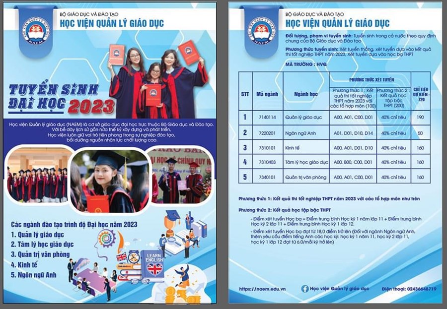 DỰ KIẾN PHƯƠNG THỨC TUYỂN SINH ĐẠI HỌC - HỌC VIỆN QUẢN LÝ GIÁO DỤC NĂM 2023