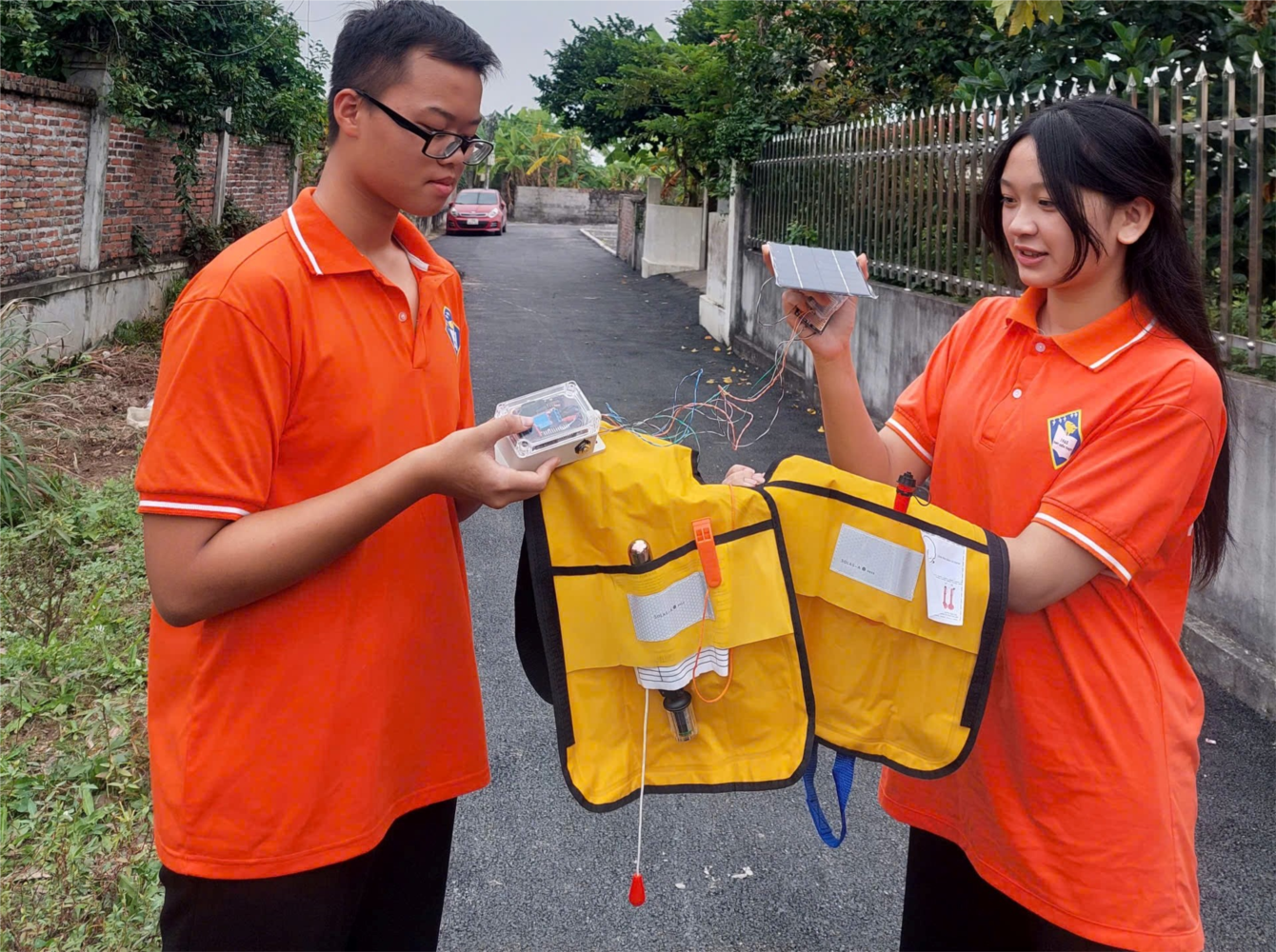 Từ thực tế đó nhóm học sinh Nguyễn Công Thành (lớp 10C2) và Nguyễn Mỹ Linh (lớp 12A1), dưới sự hướng dẫn của cô giáo Nguyễn Thị Định, đã lựa chọn tiếp cận vấn đề theo hướng gắn với thực tiễn đời sống thông qua dự án “Áo phao thông minh tích hợp định vị GPS, cảm biến sinh học, AI dự đoán nguy hiểm và năng lượng mặt trời”.