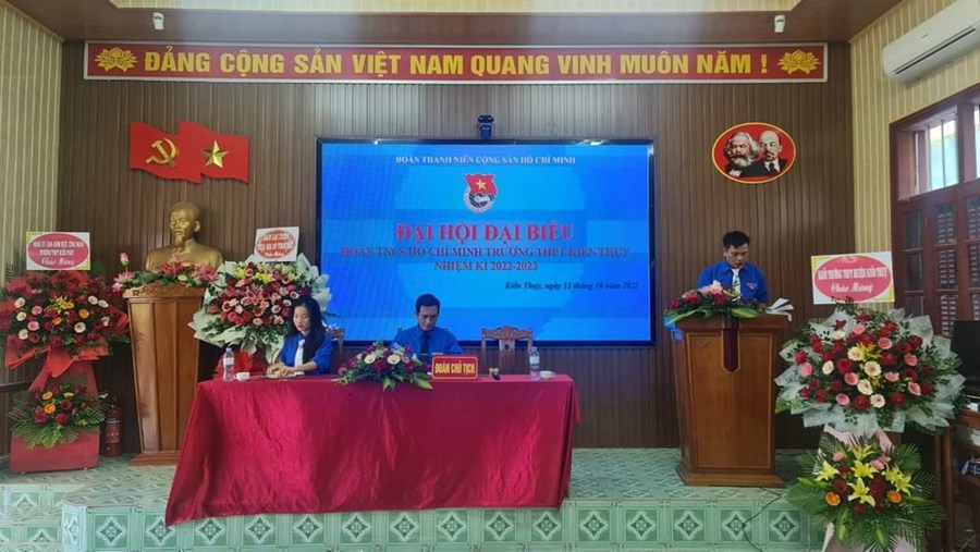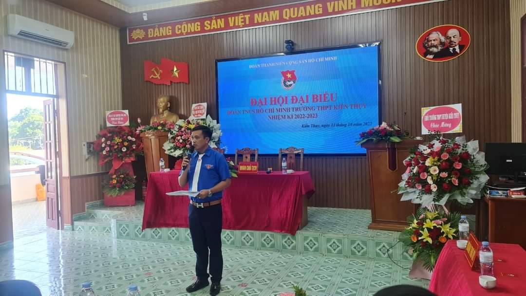 Thực hiện Chương trình công tác Đoàn và phong trào thanh niên trường học năm học 2022-2023, được sự hướng dẫn, chỉ đạo của Ban Thường vụ Huyện đoàn, sự đồng ý của Đảng bộ nhà trường. Chiều ngày 13/10/2022 tại Hội trường trường THPT Kiến Thụy , Đoàn Trường THPT Kiến Thụy đã long trọng tổ chức Đại hội Đại biểu Đoàn TNCS Hồ Chí Minh nhiệm kỳ 2022 - 2023.