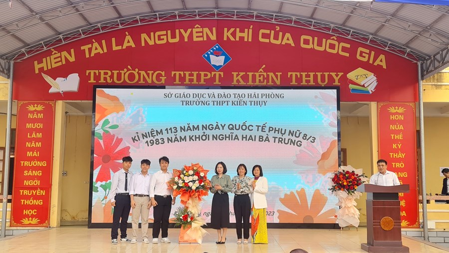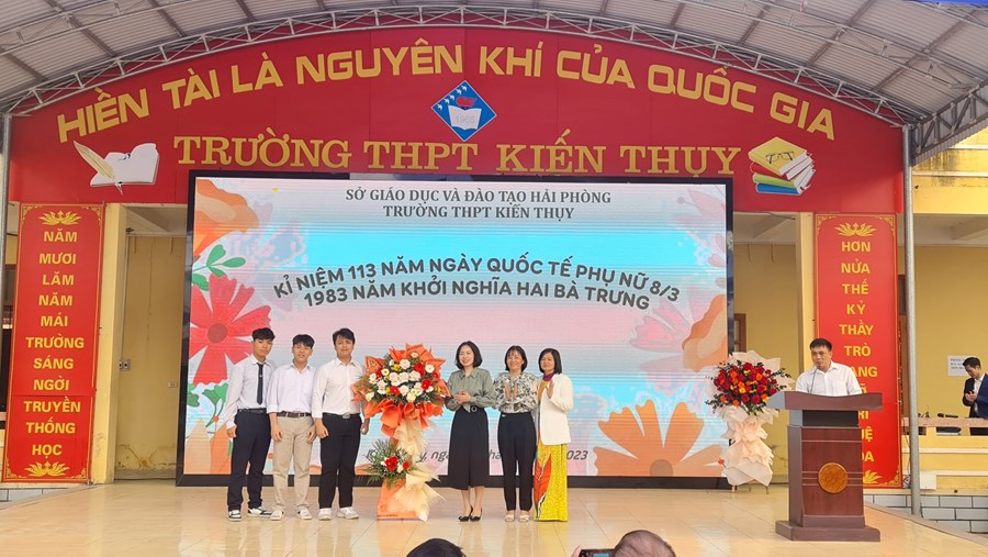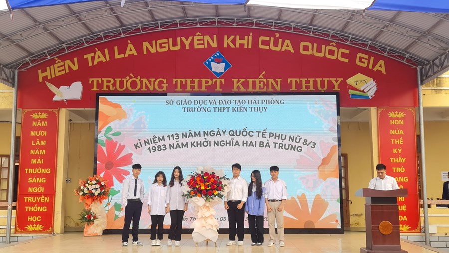 - Tặng hoa các em học sinh nữ của nhà trường (đại diện HS nam)