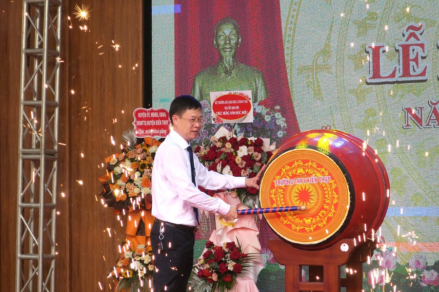Thầy giáo Đào Thế Anh - Hiệu trưởng trường THPT Kiến Thụy đánh trống khai giảng năm học mớiTại Lễ khai giảng, Liên đoàn Lao động thành phố tặng Bằng khen cho tập thể và 2 cá nhân thuộc nhà trường có thành tích xuất sắc. Nhà trường vinh danh và khen thưởng 19 giáo viên có chất lượng giảng dạy nằm trong Top 1 và Top 10 thành phố; khen thưởng 12 giáo viên chủ nhiệm các lớp 12 có tỉ lệ đỗ Đại học đạt 100%; khen thưởng 4 tổ nhóm chuyên môn góp phần đưa thành tích nhà trường vào Top 10 thành phố trong kì thi tốt nghiệp THPT năm 2024; khen thưởng 10 học sinh đạt điểm thủ khoa, á khoa các khối thi trong kỳ thi tốt nghiệp THPT năm học 2023 - 2024.